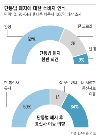 결국 이 법안은 어떻게든 점유율을 높이려고 출혈적인 마케팅비를 지출하던 3대 대형 이동통신기업의 편의를 봐주기 위해 만든 법이며, 소비자와 휴대전화 제조 업체들에게는 오히려 독이 되었다고 말할수 있습니다. 단통법이 통과됨으로써 4분의 1이상을 마케팅비로 소모하던 sk텔레콤은 막대한 마케팅 비용을 최소화할 수 있었고 적자에 허덕이던 kt는 단숨에 흑자전환에 성공하게 됩니다.
